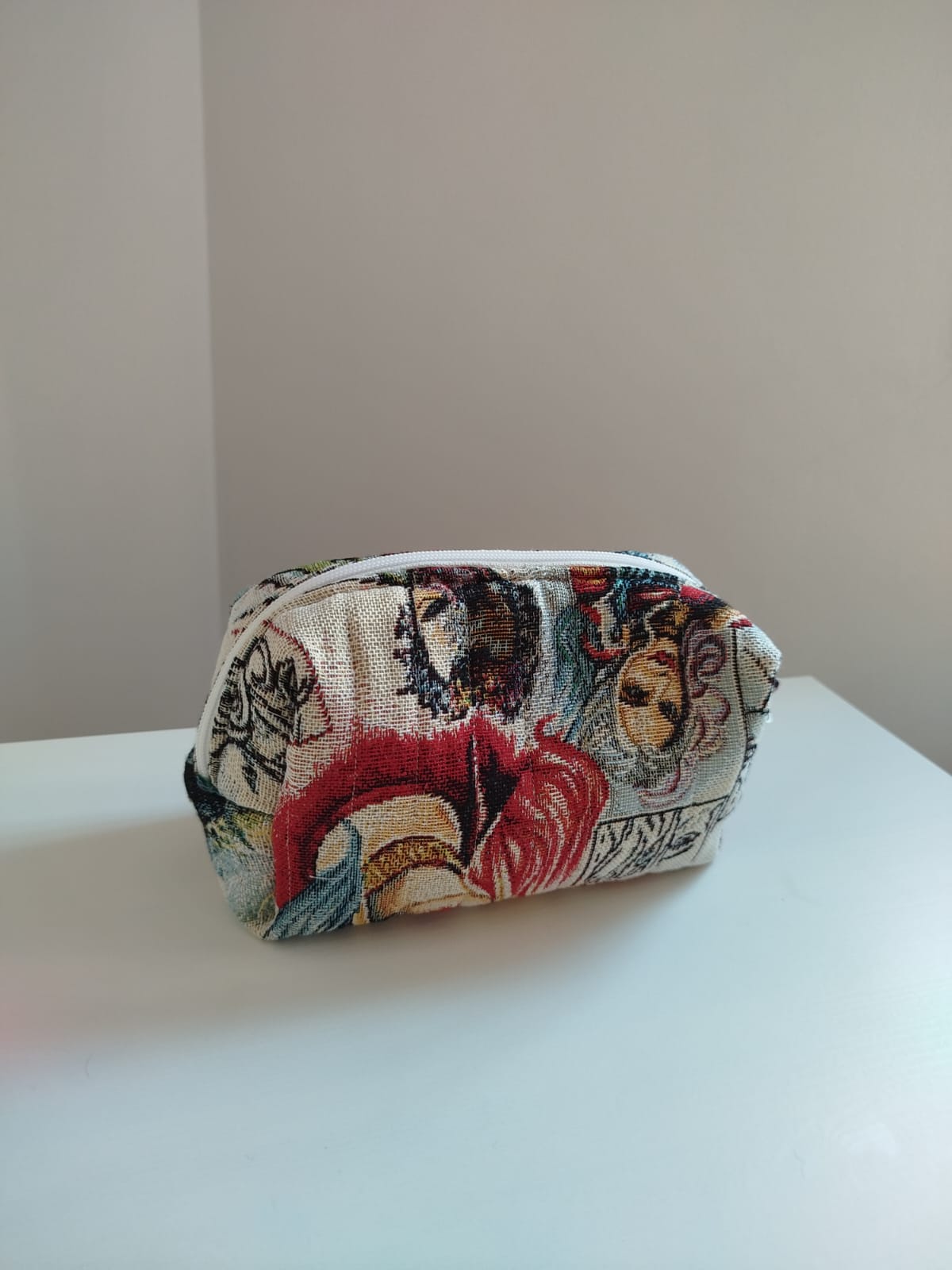 Neceser con estampado de los míticos Joker y Harley Quinn, personajes del universo DC, acolchado vertical, y con forro de la misma tela o blanco. También se pueden personalizar.